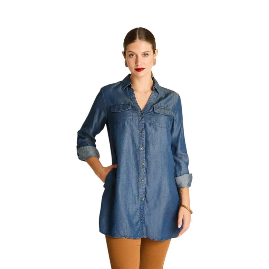 Blusón Mujer Weekend Manga Larga Roll Up Blue Medio | Dimarsa