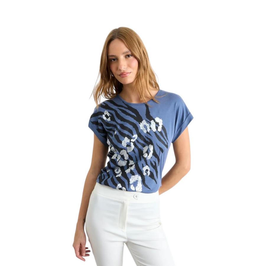 Polera Mujer IO Estampada Flores Azul | Dimarsa