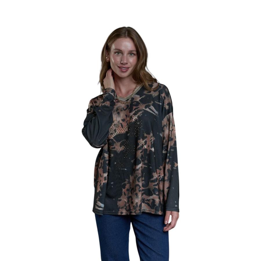 Polera Estampada Tachas Mujer Give I56415 Talla Unica Camel | Dimarsa