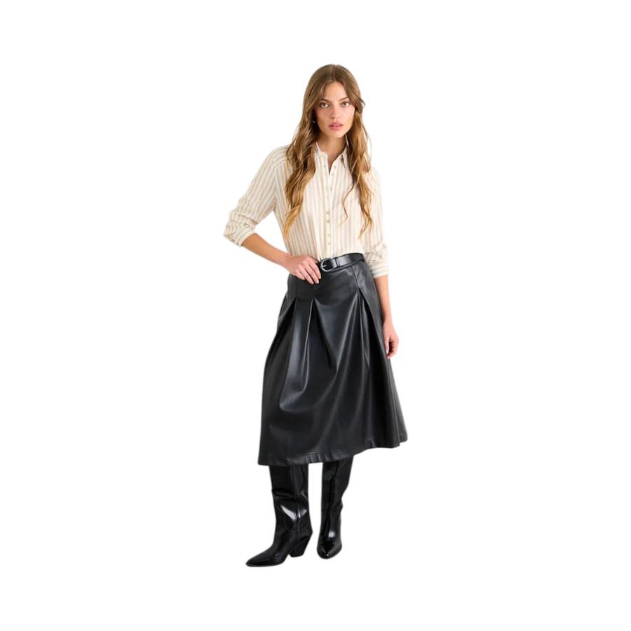 Falda Mujer iO Larga Plisada de PU Negro | Dimarsa