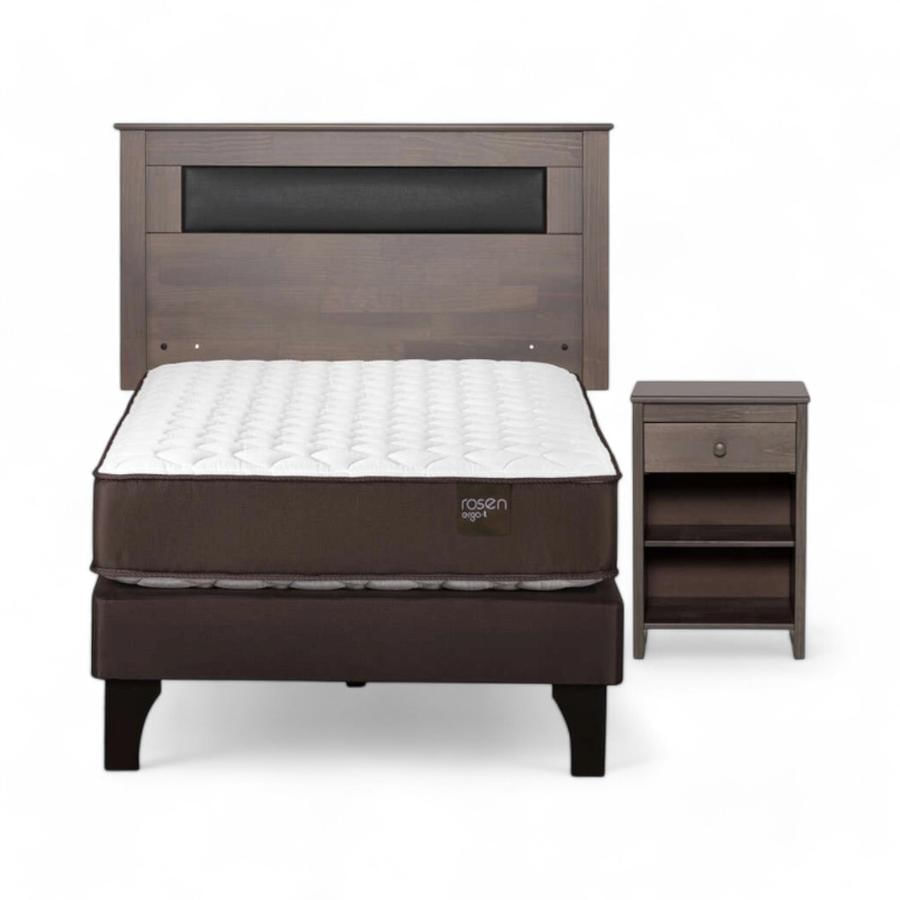 Cama Rosen Ergo T 1.5 Plazas + Muebles Ivar Café