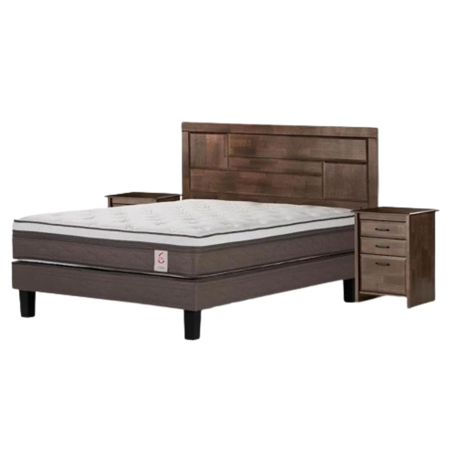 Combo Cama Europea Rosen 2 Plazas New Style 6 BN + Respaldo y Veladores Rachel