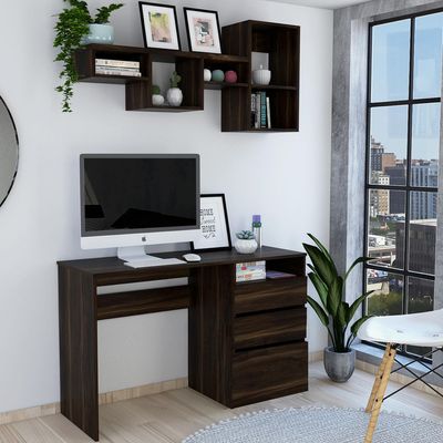 Escritorio 3 cajones Office 7 + repisa Wall 1A habano TuHome