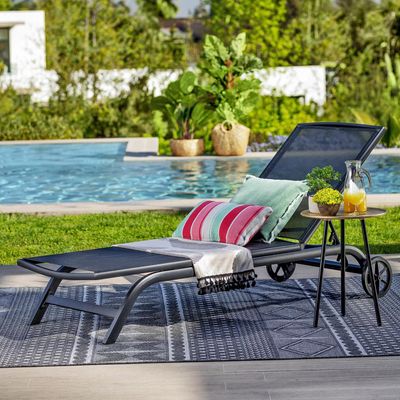 Reposera con Ruedas 4 posiciones Textileno Negro | Falabella