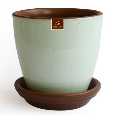Set Macetero y Plato Zafiro de Cerámica 10x13 cm Verde Salvia | Falabella