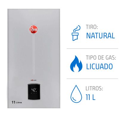 Calefont ionizado tiro natural 16 litros gas licuado modulante Rheem