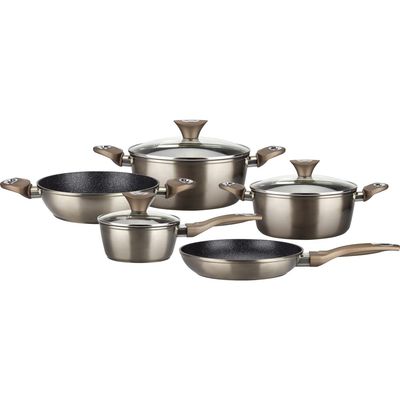 Batería de Cocina 8 Piezas Aluminio Champagne Café | Falabella
