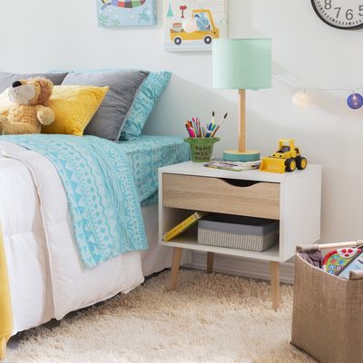 Velador 1 Cajón(es) Oslo 50x49x39 cm Blanco/Roble | Falabella