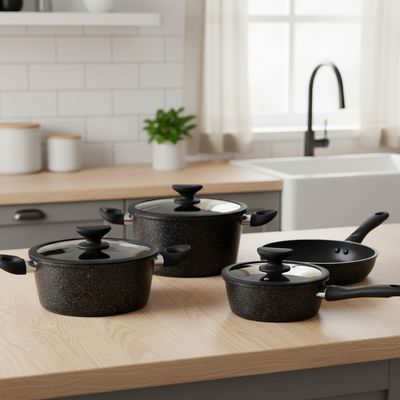 Batería de Cocina 7 Piezas Aluminio Antiadherente Negro | Falabella