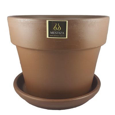 Set Macetero y Plato Greta de Cerámica 23x20 cm Café | Falabella