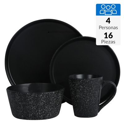 Juego de Loza 16 Piezas Cerámica Mármol Negro | Falabella