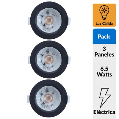 Pack 3 Panel Led Empotrado Circular Negro 6,5W Luz Cálida | Falabella