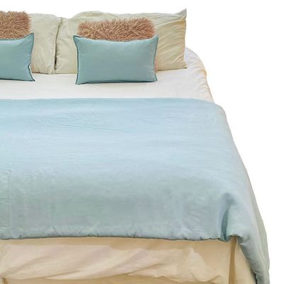 Set Piecera de Lino Azul 80 X 210 +2 fundas