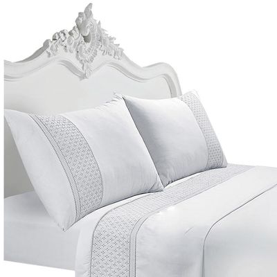 Juego de Sabanas 180 Hilos Broderie Blanco 1,5 Plazas | Falabella