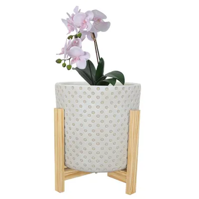 Maceta base madera gris 21 cm