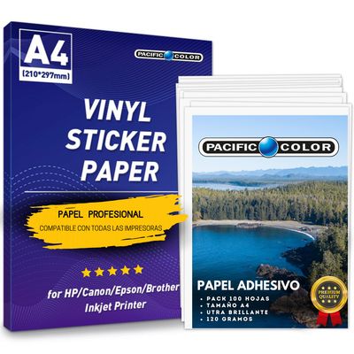 Pacific Color - 100 Hojas Papel Fotográfico Autoadhesivo A4 120Grs - Ps