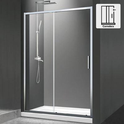 Mampara Premium corredera frontal perfil cromado 190x160x3.5 cm