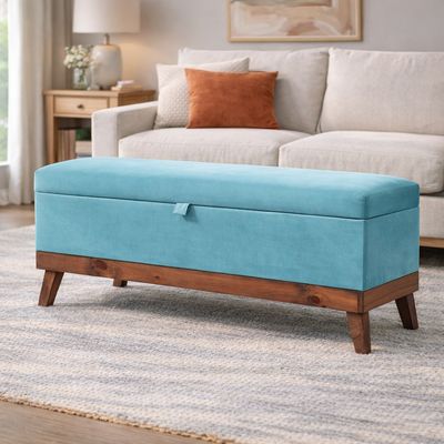 Banqueta con Baúl Incy Felpa Turquesa para Living o Dormitorio 120x50x40 cm | Falabella