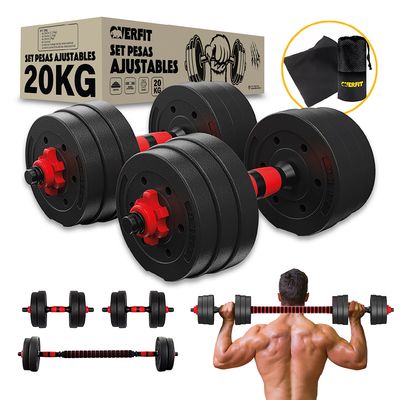 Set Mancuernas Y Barra Unibles 20kg Fitness Pesas Ajustables | Falabella