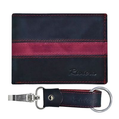 Pack Billetera-Llavero de hombre Cuero Negro-Vinotinto | Falabella