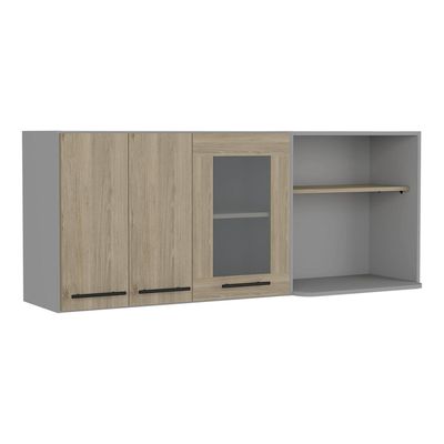 Tuhome - Mueble De Cocina Mural Espacio Microondas 150 Cm Hasselt Gris Y Rovere