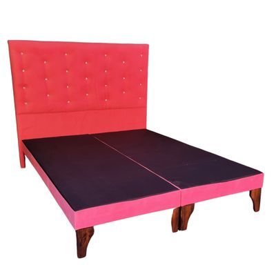 Cama Europea 2Plazas Palo Rosa Felpa Botón Diamante