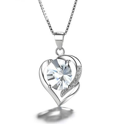 Collar Con Colgante Plata 925 Corazón Circón Azul Elegante Joya Mujer | Falabella