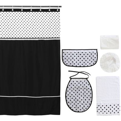Cortina y Set de baño 7 piezas 180 x 180 cms circulos negros. | Falabella