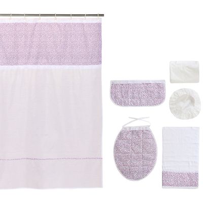 Cortina y Set de baño 7 piezas 180 x 180 cms blanco flores rosadas | Falabella