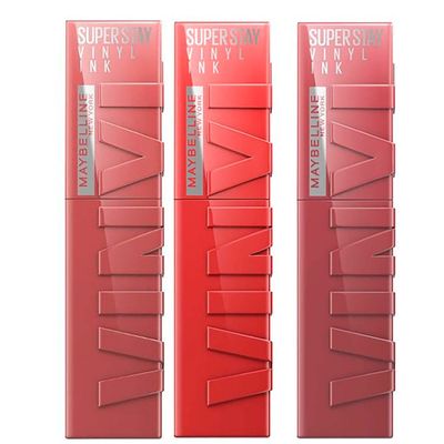 4 Labiales Superstay Vinyl Ink Rojos Hasta 16H Maybelline.