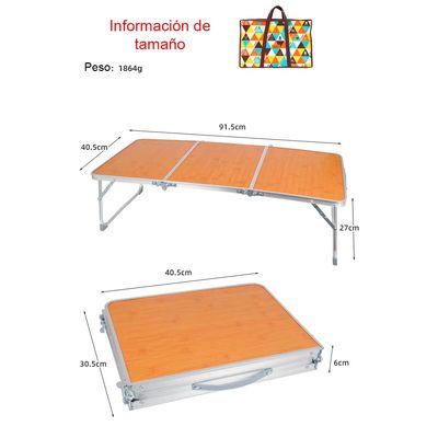 MESA PLEGABLE PARA CAMPING PICNIC OUTDOOR 90x40x60cm
