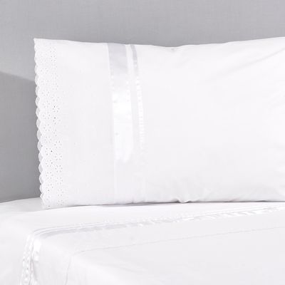 Sábana Broderie Blanco 220 Hilos 1,5 Plaza | Falabella