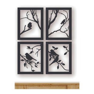 Cuadros Ramas y Pájaros Artesanal En Madera MDF Pack 4ud | Falabella