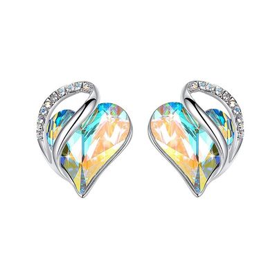 Aros Corazón Cristal Austríaco Aurore Boreale Gancho Plata Fina 925