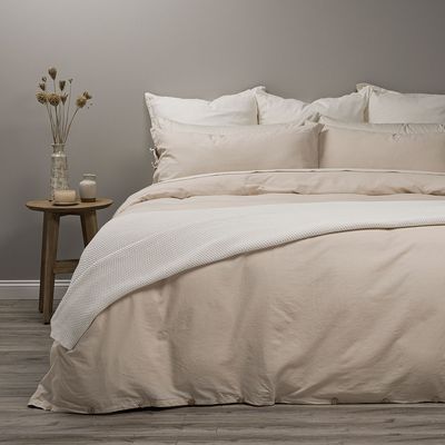 Funda Plumón Rosen Lino-Algodón Pure Liso Arena 1,5 Plazas