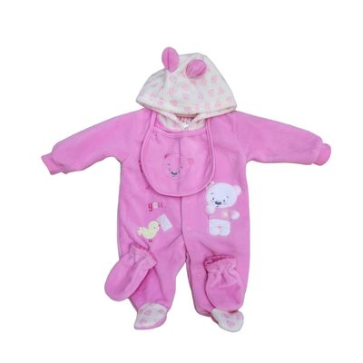 Set Osito Enterito Babero Mitones Bebe Niña Polar | Falabella