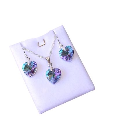 Conjunto Corazones en Rosa Plata Esterlina 925