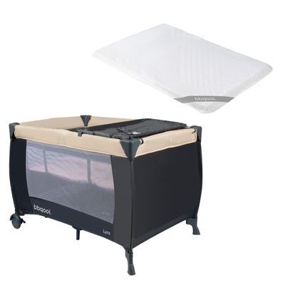 Bbqool - Cuna Playard Lyra Beige + Colchón De Viaje Plegable