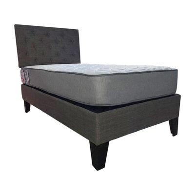 Cama Europea 1plaza Respaldo Gris Felpa Colchon Resorte Bonnell Marver
