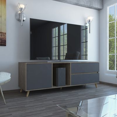 Rack TV 60"" Con 2 Cajones Y 1 Puerta Fm-008C - Cafe Claro / Plomo | Falabella