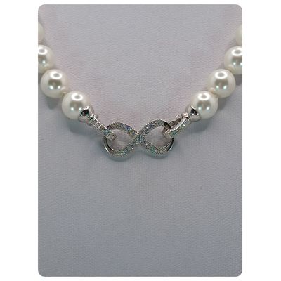 Collar de perlas shell broche infinito de plata fina 925 con baño de rodio con circones | Falabella