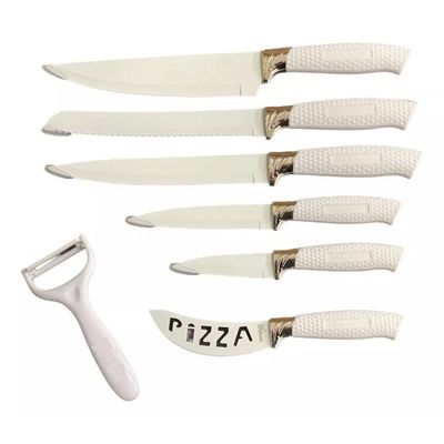 Mp - Set Cuchillos De Cocina 7 Piezas Elegance Marble Blanco Dorado