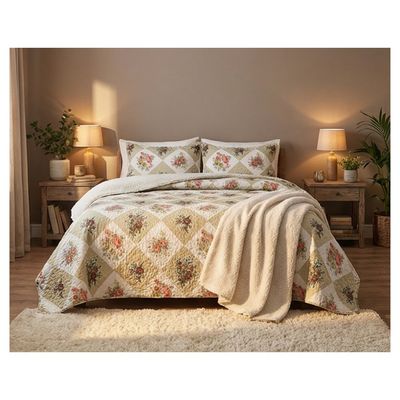 Genérico - Cubrecama Quilt Sherpa 2 Plazas - Rombo Rosas M938