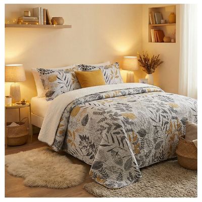 Cubrecama Quilt Sherpa King - Gris Claro Hojas M911