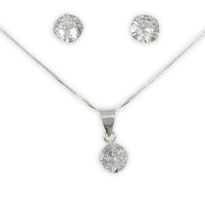 Conjunto Punto De Luz Aros Collar Circon Plata 925 + Caja | Falabella