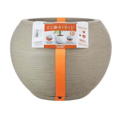 MACETERO BEIGE EFECTO PIEDRA FLORENCIA 19CM ALTO CON PLATO