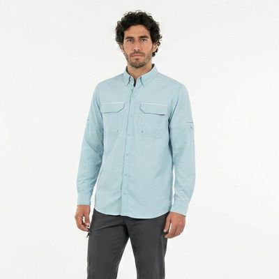 T-World - Camisa Outdoor Trekking Hombre Ripstop Protección Uv+50 Celeste