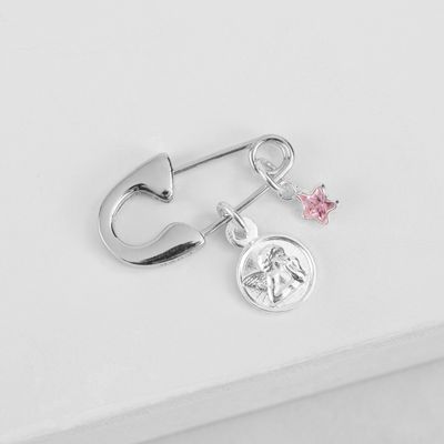 Ganchito Bebe en Plata 925 con Angel de la Guarda y Estrella rosa | Falabella