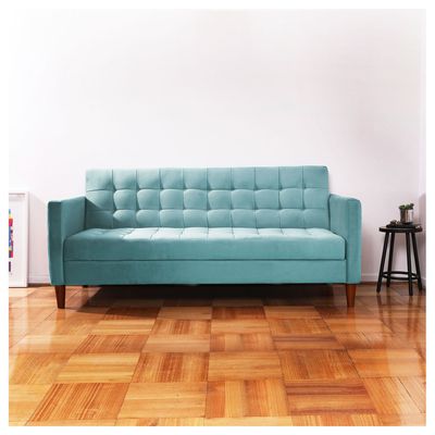 Living Emilia Sofá 3 Cuerpos 2 Pouf Tela Felpa Turquesa