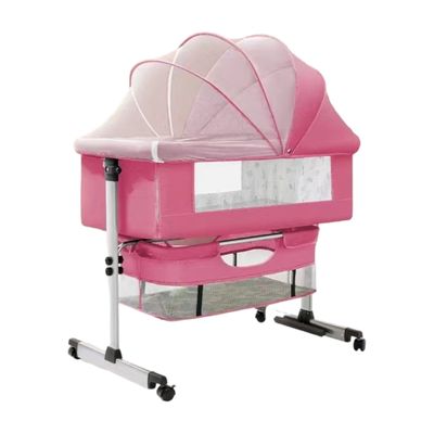 Cuna Colecho Con Mudador Colchón Mosquitero LuBabycas Rosada